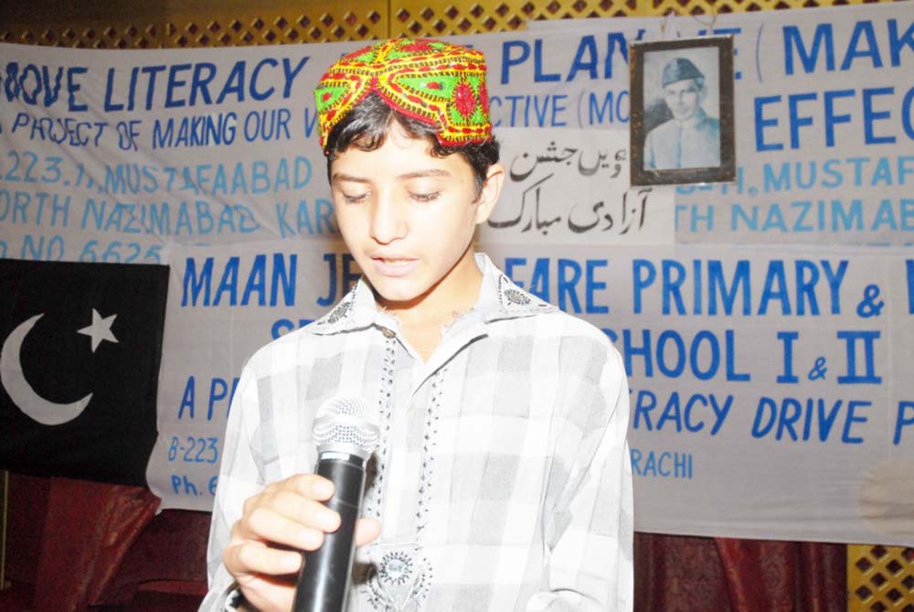 After the recitation from the Holy Quran, the function started properly. Hamd mockeries, songs, tableau drama and national anthem were presented by students. Dr. Muhammad Ali Siddiqui, a well-known educationist and an authority on Pakistan studies was invited as the Chief Guest. He encouraged the efforts of students and hoped they will take interest in their pursuit of knowledge.